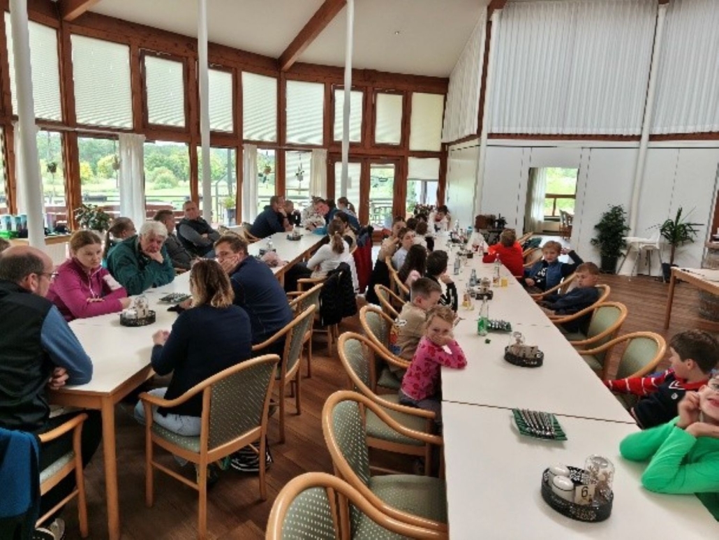Nach nicht einmal 2 Stunden waren die Kids mit ihren Turnieren durch und kehrten hungrig und gut gelaunt in das Clubrestaurant ein, wo ihre Preise auf sie warteten. 😊