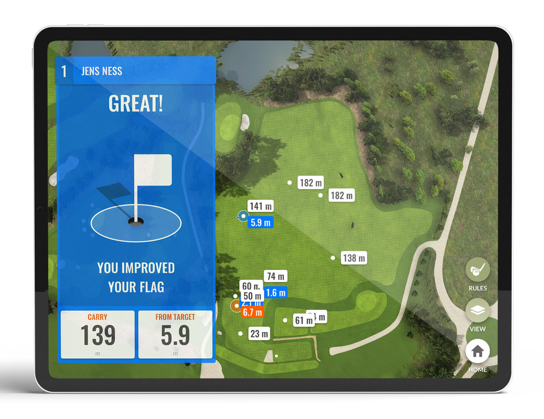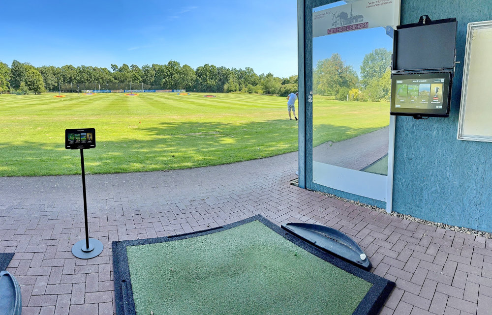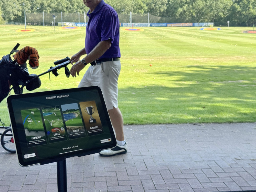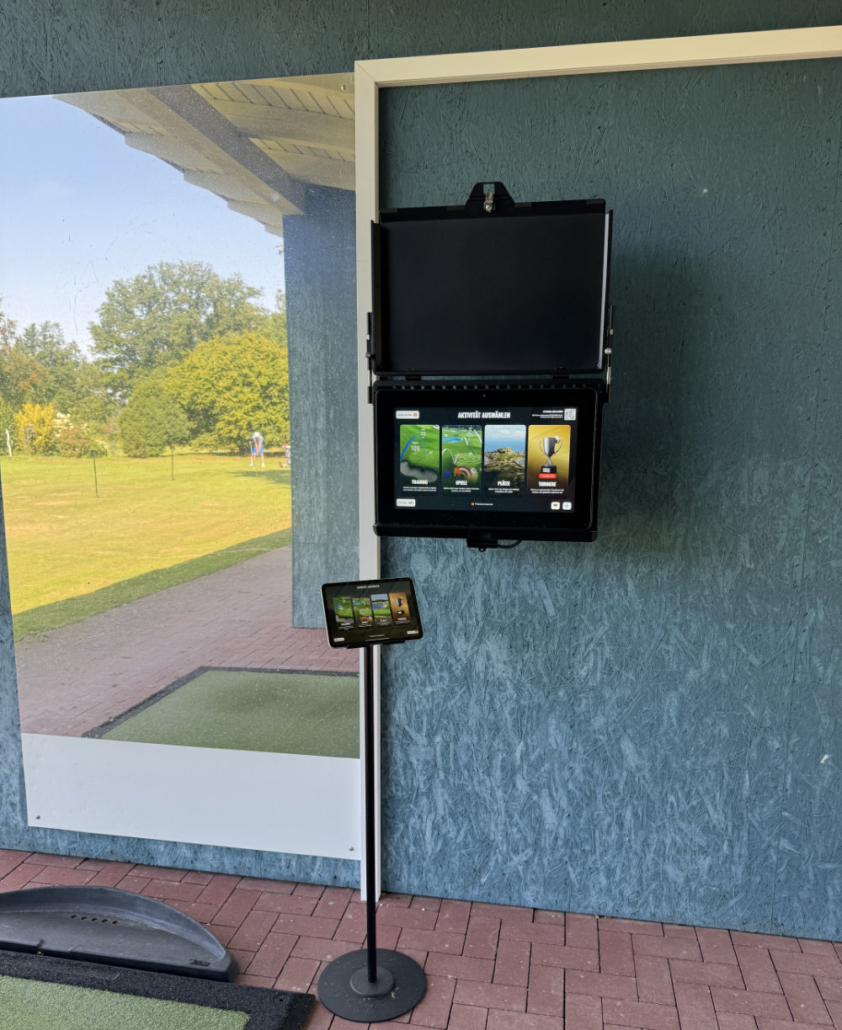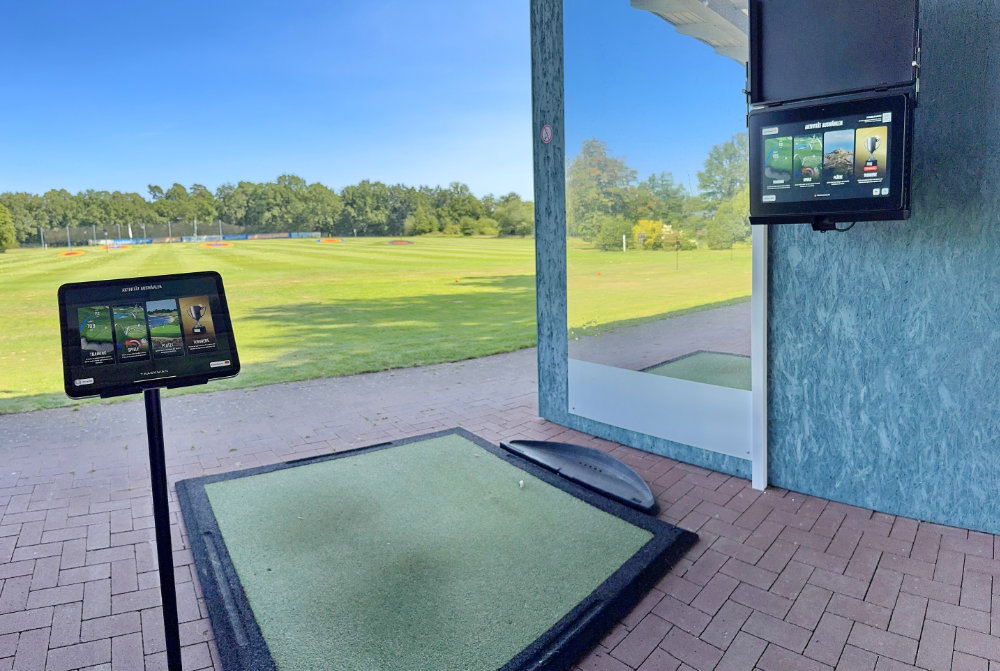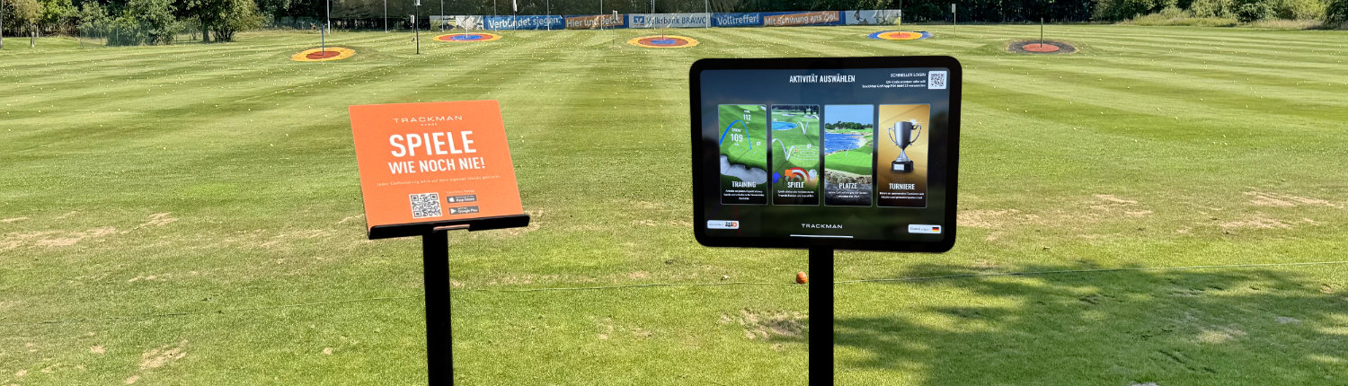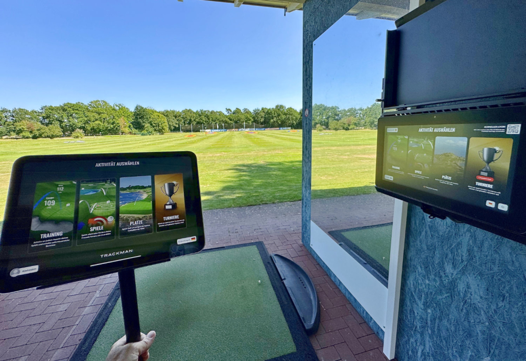 Nutze die großen Bildschirme an den überdachten Mattenabschlägen oder verbinde dich direkt mit deinem Smartphone oder Tablet auf den dafür ausgewiesenen Bereichen der Driving-Range. Praktische Gerätehalter stehen bereit, damit du überall – auch direkt auf den Grasabschlägen – dein persönliches Hightech-Training starten kannst.