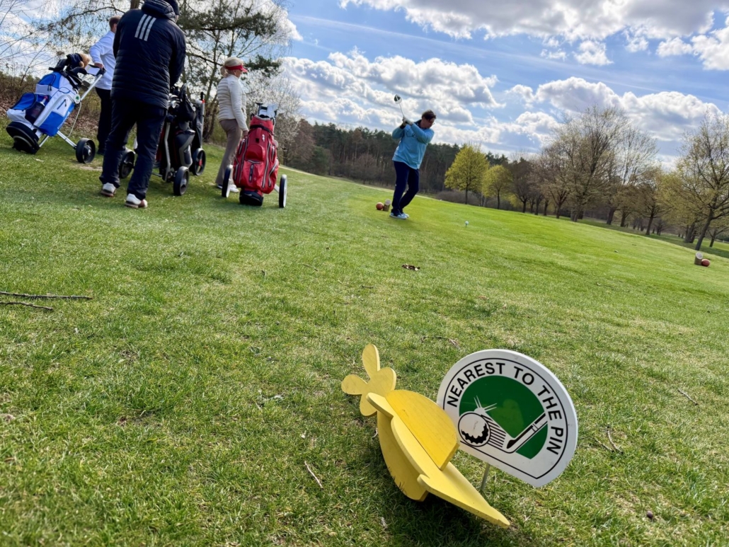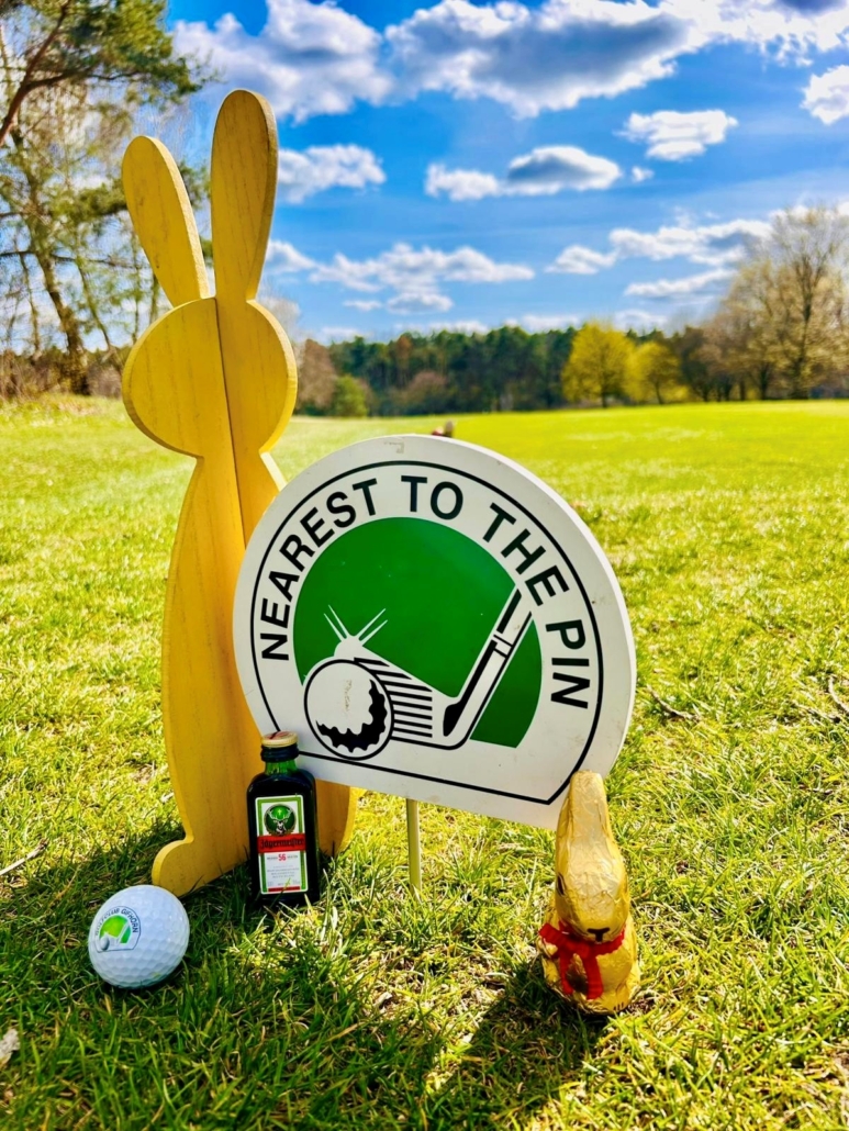 Auf der Runde hatte jeder Ball somit zwei Chancen, was natürlich für gute Ergebnisse sorgen sollte. Auf Bahn 16 durften wieder alle SpielerInnen abschlagen, denn es ging um den Sieg beim Nearest-to-the-Pin. Auf Bahn 3 hatten sich die Organisatoren etwas Besonderes einfallen lassen: Nearest-to-the-Rabbit, also wer am nächsten zum Osterhasen lag. Auch hier durften wieder alle abschlagen.